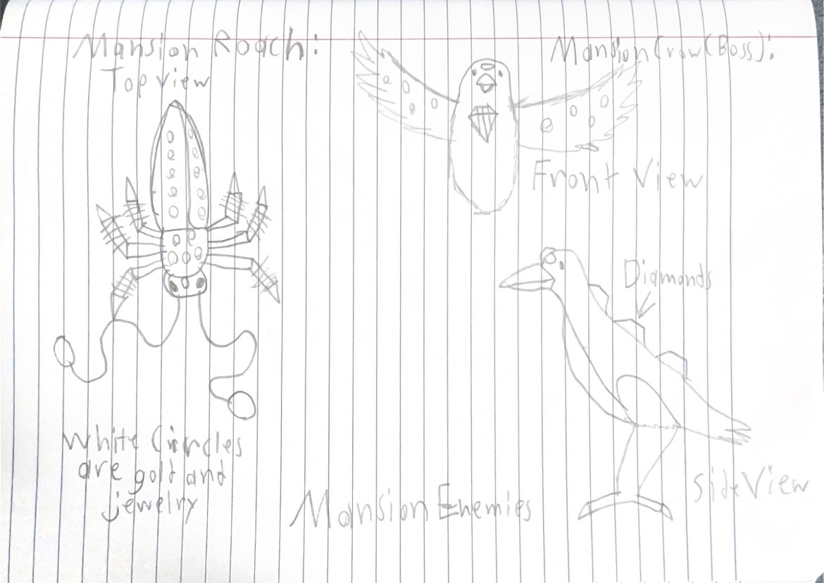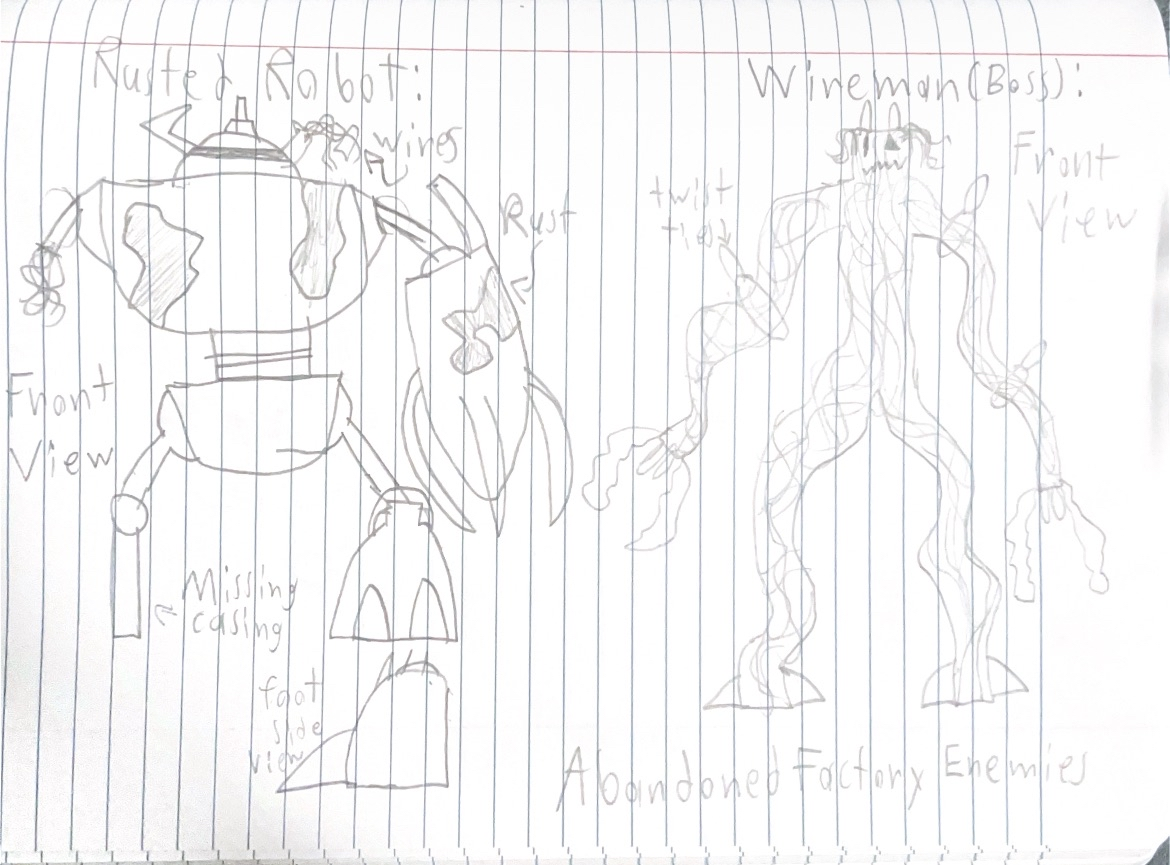 These are the base designs of the enemies that we will be using for our game. These will be sent to the other 2D artist so that way they can edit them to fit their own art style. As the level we are making is based in an abandoned factory, these enemies are based off of stuff you would find in a factory, like robots and wires. Along with these, there is also concept art I created of more enemies I created for this project.
