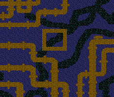 These are assets that I created to help build the layout of the level, including a tileset made of wires, a background asset with glowing pipes, another asset that is just broken pipes, and spike bed obstacles that can kill the player.